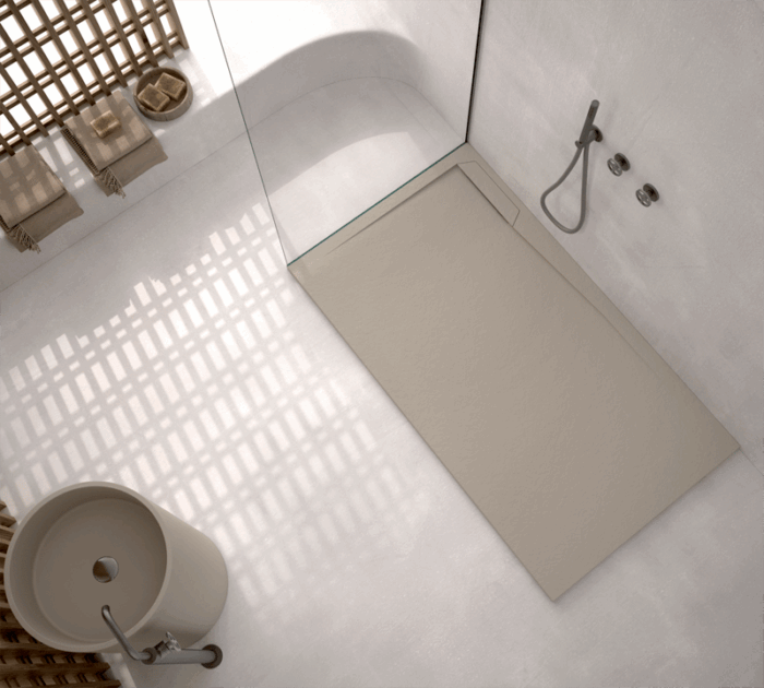 Plats extraplans de resina amb càrregues minerals. Textura Pissarra. Antibacterià i Antilliscant classe 3. Material eco-friendly: resina ECO amb un 20% de PET reciclat procedent d'ampolles de plàstic reciclades. Possibilitat de tall a mida. Reixeta pintada opcional del mateix…