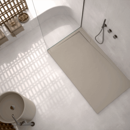 Platos extraplanos de resina con cargas minerales. Textura Piedra. Antibacteriano y Antideslizante clase 3. Material eco-friendly: resina ECO com 20% de PET reciclado de garrafas de plástico recicladas. Distintos acabados de rejilla a elegir. Las rejillas opcionales se suministran del…