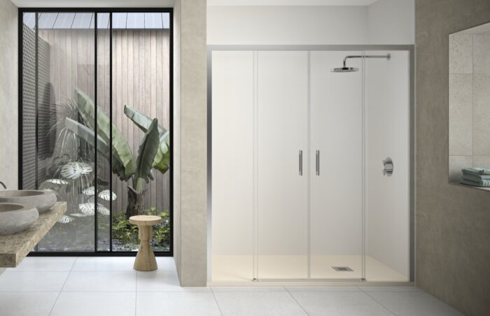 The ARCOIRIS shower screen from Doccia is an elegant and functional sliding solution for shower spaces. Made with 8mm tempered safety glass, it combines a clean design with maximum reliability.
