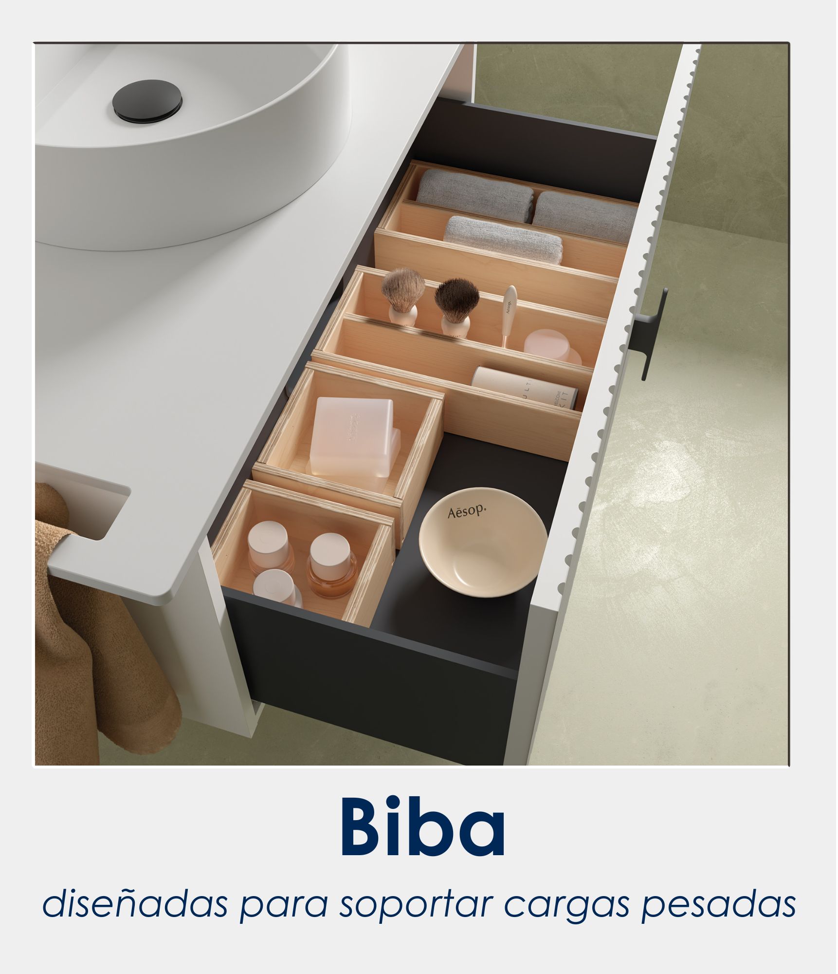 salgar biba – mueble de baño 2 cajones: Biba Collection by Salgar. Available in widths from 600 to 1000mm. 2 metal drawers with soft close. 15 finishes. Ideal for professional and private facilities.