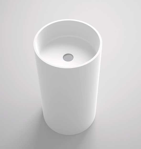 Lavabo tipo tótem de diseño contemporáneo. Solid Surface con acabado mate.