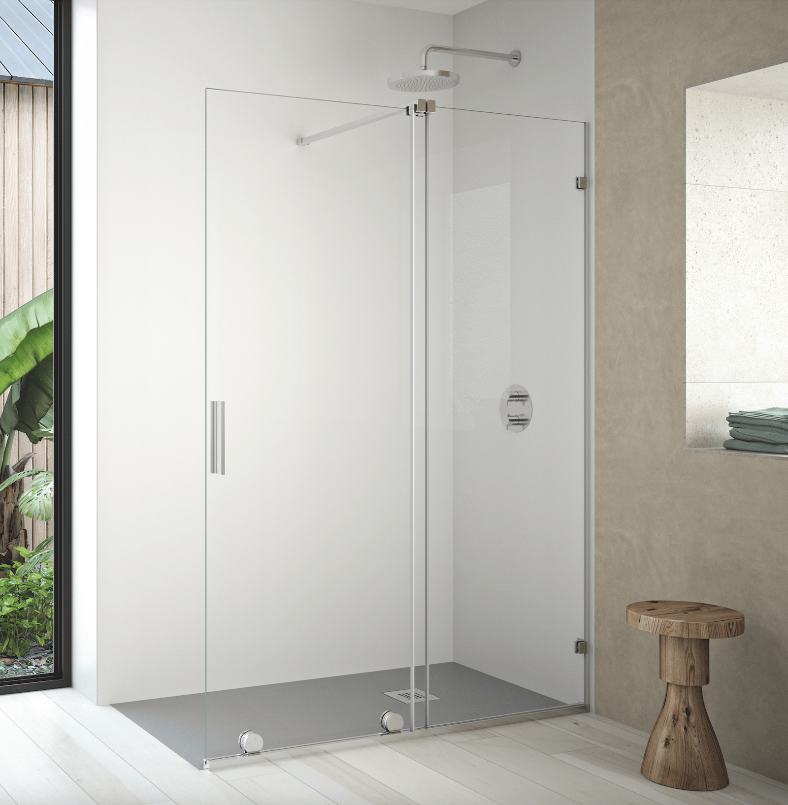 Mampara de ducha frontal de una hoja corredera y una hoja fija