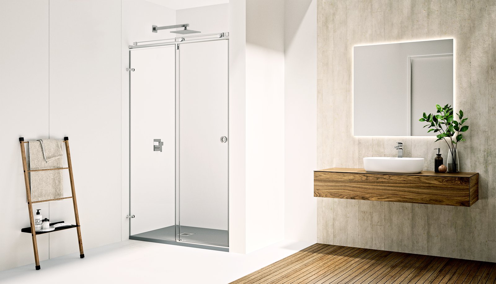 Mampara de ducha frontal de una hoja corredera y una hoja fija