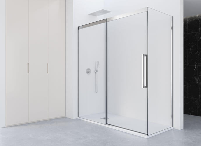 Mampara para bañera y ducha con hojas correderas. Vidrio de seguridad de 8 mm. Compensación de perfil a pared de 10 mm. Rodamientos compensables en altura 5 mm. Sistema anti-vuelco de hojas. Sin guía inferior. Cierre progresivo incluido en modelos…